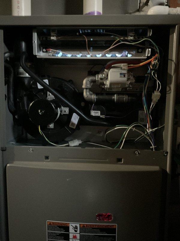 Performed scheduled air handler maintenance service. Conducted thorough inspection of furnace interior components including gas valve assembly, blower motor, heat exchanger, and electrical connections. All systems functioning normally with no visible damage or safety concerns identified.