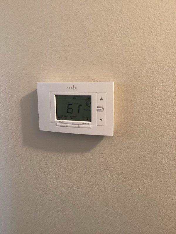 Responded to service call for blank thermostat display in main living area. Performed diagnostic evaluation on Sensi digital thermostat and residential air conditioning system. Determined root cause of display malfunction and completed necessary repairs to restore proper thermostat operation and temperature control functionality.