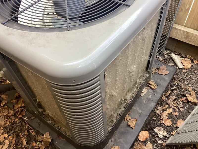 Performed comprehensive inspection of 10-year-old central air conditioning system experiencing inadequate cooling and reduced airflow. Evaluated outdoor condensing unit, which showed signs of debris accumulation and required cleaning of exterior components and fan grille. Assessed ductwork system for potential air leakage contributing to diminished airflow at supply registers, examined insulation conditions, and provided professional recommendations to resolve cooling efficiency issues and restore proper system performance.