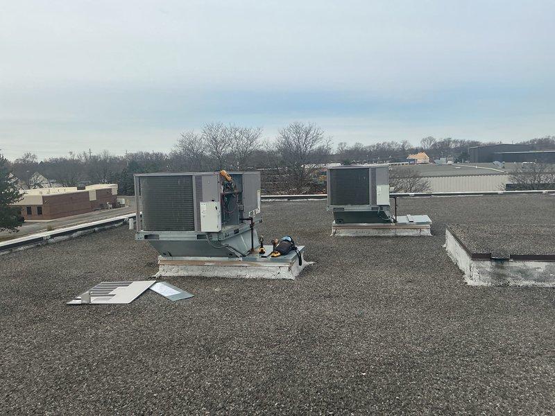 Responded to no-heat call for commercial rooftop unit installed in 2021. Upon arrival, performed diagnostic inspection of RTU and removed access panels to troubleshoot system malfunction. Technician conducted thorough assessment of unit components to identify cause of failure and determine necessary repairs to restore heating operation.