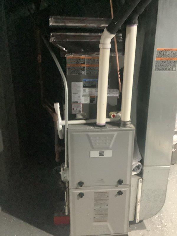 Completed complimentary annual furnace maintenance on Lennox heating system as part of preventative maintenance membership program. Performed comprehensive tune-up inspection on recently installed furnace unit (0 years old), verifying proper operation of all components, checking PVC venting connections, and ensuring system is running efficiently for the heating season. All equipment found in excellent condition with no issues identified during inspection.