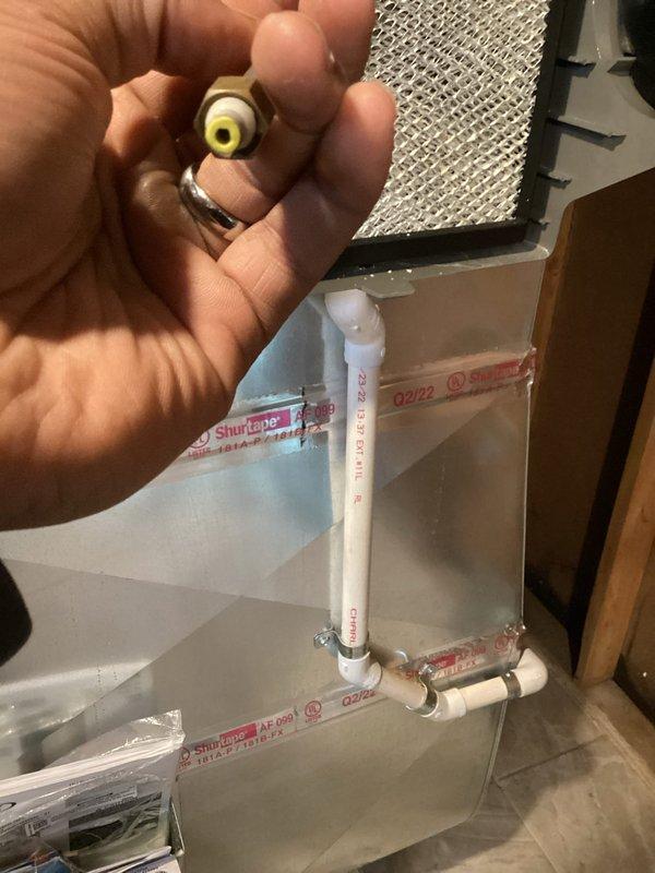 Completed scheduled Air Care Heating and Cooling maintenance service. Identified significant corrosion and mineral deposits at pipe connection points near water heater, with visible leakage evidence at copper/metal pipe junctions. Documented severe oxidation and deterioration of plumbing components that will require follow-up repair to prevent further water damage.