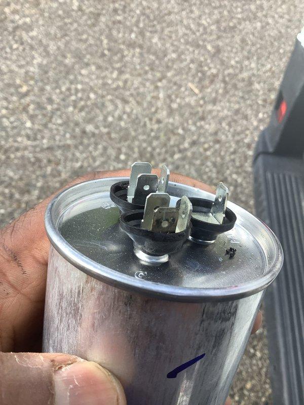Responded to service call for 11-month-old outdoor AC unit reported to have been overcharged with refrigerant. Upon inspection, discovered failed capacitor showing visible corrosion and oxidation on terminals. Removed defective capacitor and installed replacement unit. Verified proper system operation and confirmed equipment returned to normal functioning. Work completed under parts and labor warranty.
