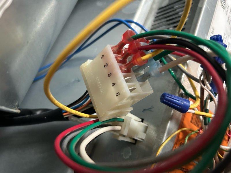 Responded to service call for excessive noise from 5-month-old mobile home HVAC unit and water accumulation around furnace. Inspected outdoor equipment and identified blower assembly requiring adjustment from initial installation. Addressed condensate drain line issue causing water discharge around furnace area, cleared blockage, and verified proper drainage flow. Checked all electrical connections at control terminal block, confirmed proper wiring configuration, and tested system operation to verify noise levels returned to normal parameters.