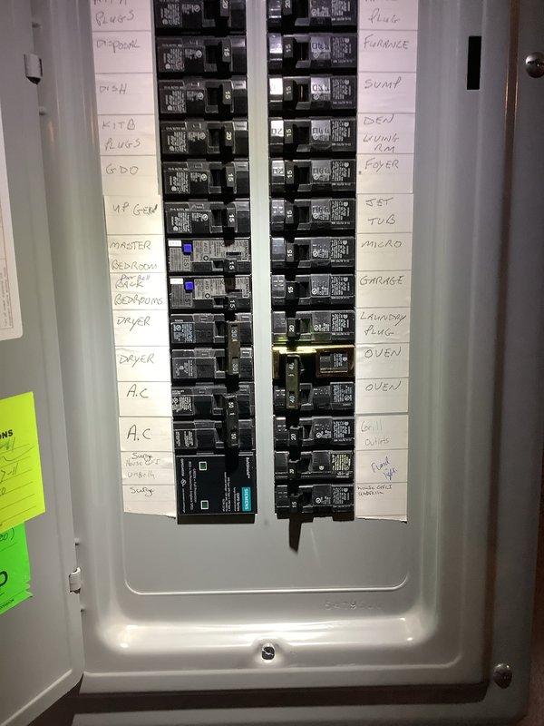 Installed whole home surge protector at main electrical panel. Integrated surge protection device into existing breaker panel to safeguard all circuits and connected appliances from voltage spikes and power surges. Verified proper installation, tested functionality, and confirmed all existing circuit breakers remained properly labeled and operational.
