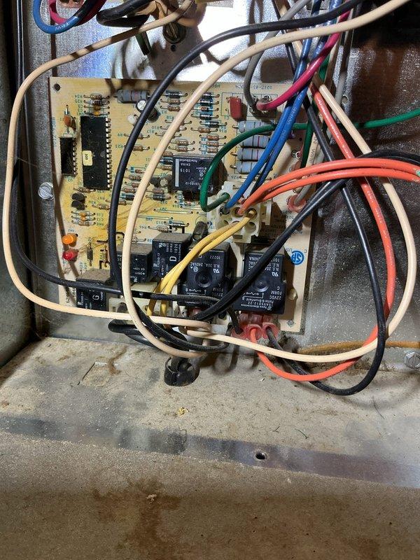 Responded to no heat call with intermittent ignition issues on furnace located at maintenance level. Upon inspection, found faulty control board with compromised electrical connections and damaged components affecting ignition sequence. Replaced defective control board, reconnected all wire harnesses to proper terminals, tested system through multiple heating cycles to verify reliable ignition and proper operation.